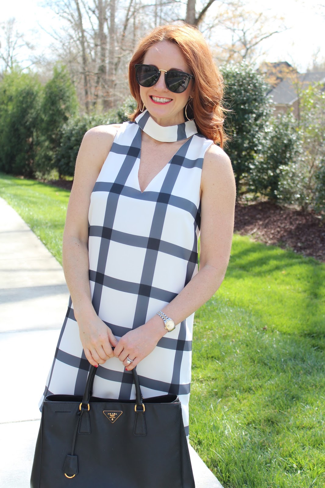 This dress pairs modern bodice lines with classic grid graphics that can go from casual with a pair of sandals or wedges to professional with a pair of pumps. Gals, I literally go through the styling options in my mind when selecting garments. And don't forget the unlimited amount of color you can add with accessories.